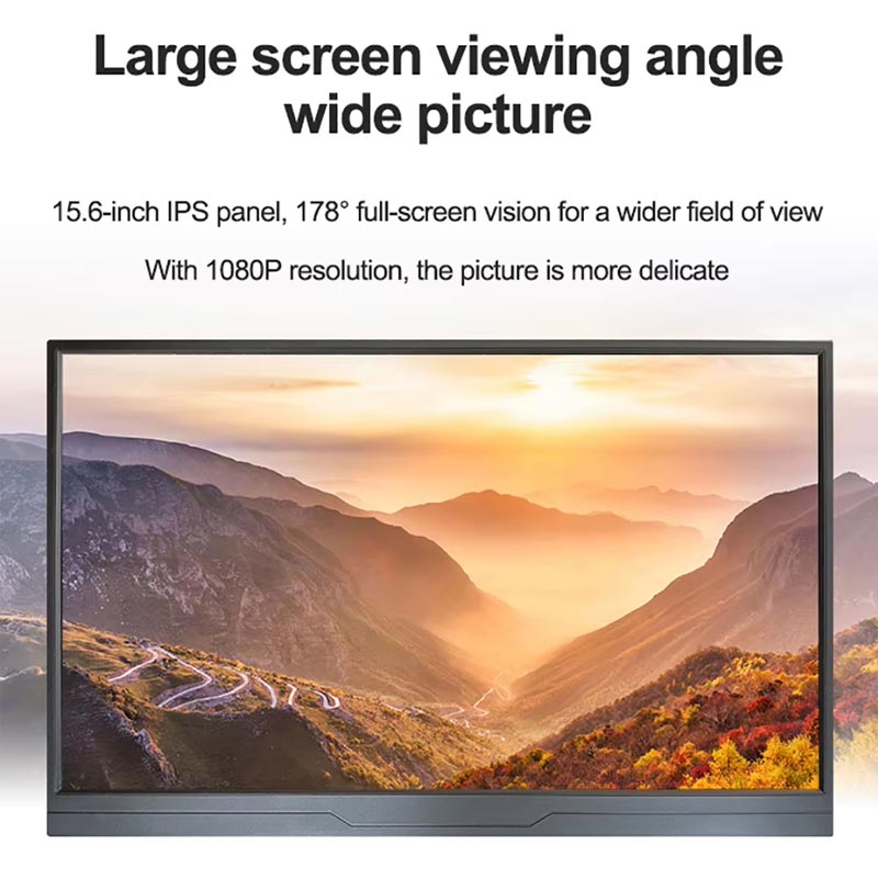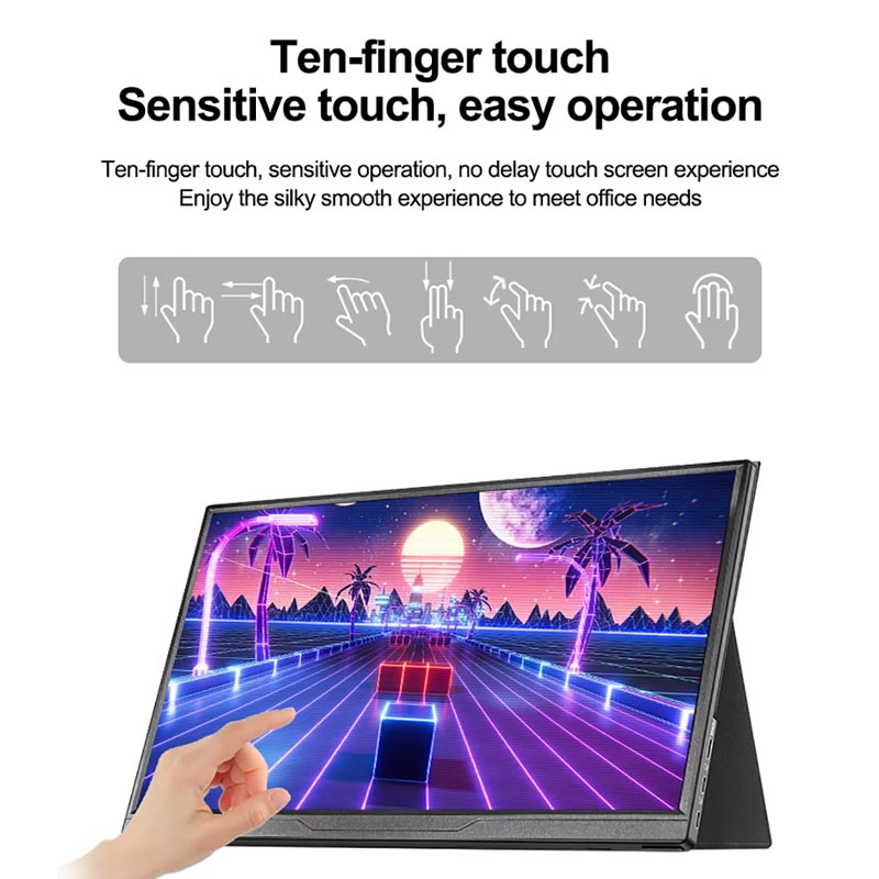 FZX 15,6 hüvelykes érintőképernyő Az 1920*1080p hordozható monitor képernyője 1920*1080p felbontású, nagy felbontású kijelzővel rendelkezik. 60 Hz-es frissítési gyakorisággal, 300 cd/㎡ fényerővel és 60%-os sRGB színskálával, Touch Function támogatással, ez a monitor tökéletes azoknak a játékosoknak és diákoknak, akiknek játékai 30 Hz-re vannak zárva.